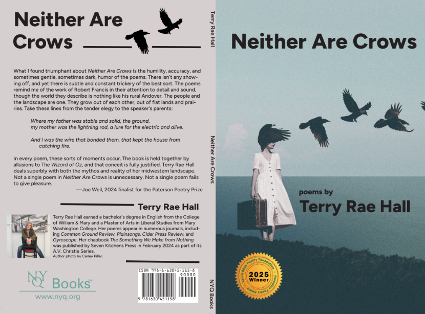 The Book Launch Reading for the 2025 Laura Boss Narrative Poetry Award will be held on April 25 at The Poetry Center at PCCC in Paterson, NJ. Reading that day will be the winning poet, Terry Rae Hall, from her book Neither Are Crows (NYQ Books, 2026).